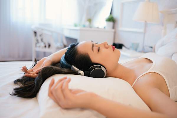 音响设备甚至小型的室内饮水机都可以掩盖外部声音,促进放松。最好不要在卧室里放蜡烛,但是芳香疗法扩散器或含有促进睡眠成分的喷剂,比如薰衣草和香草,也可以是特别好的放松工具。